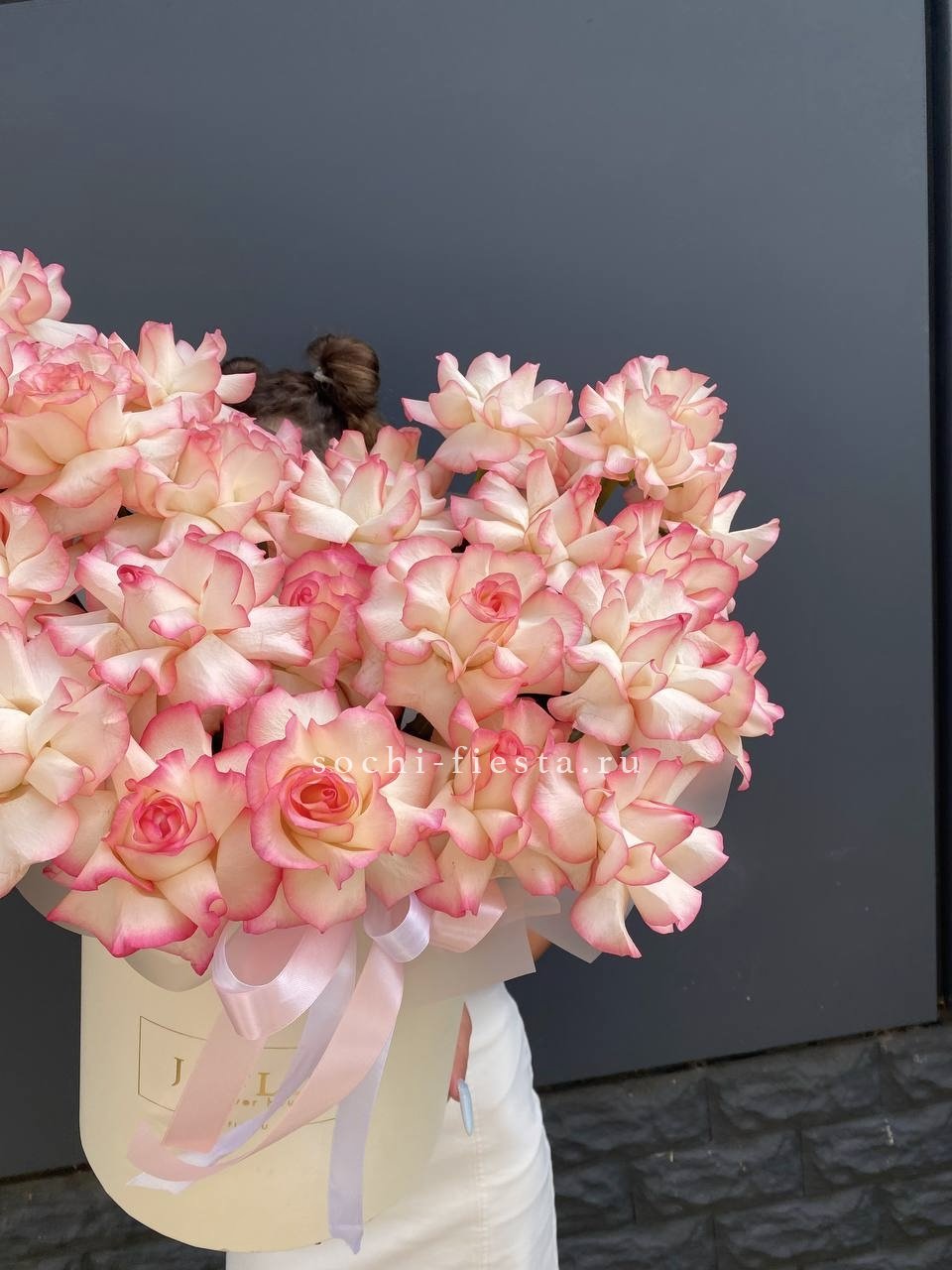 Для заказа товара "31 французская роза Джумилия в боксе" с доставкой в Тюмени нажмите в корзину