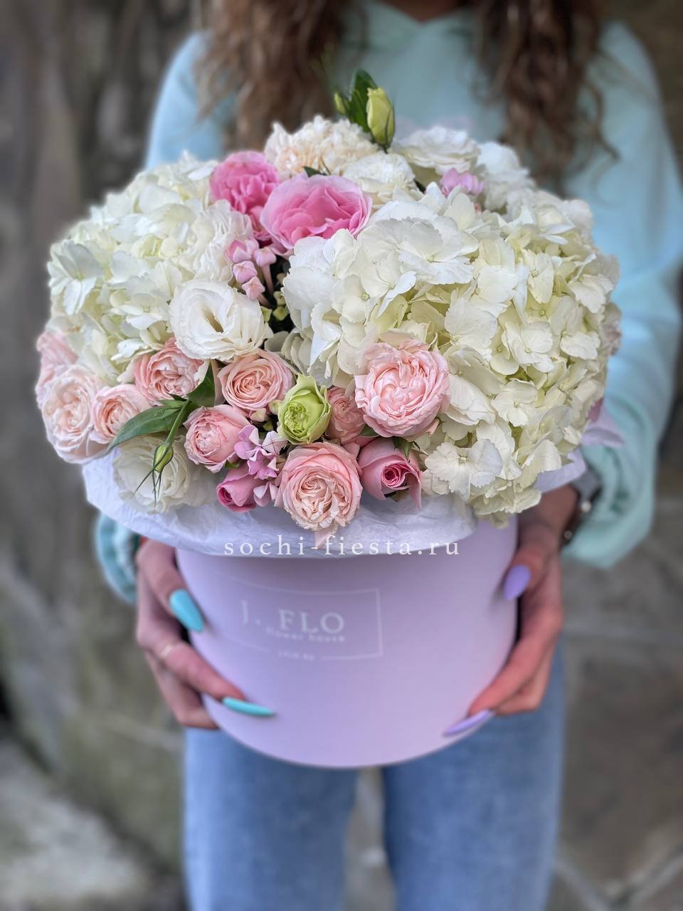 гортензия - 7 шт., лента, дизайнерская упаковка.