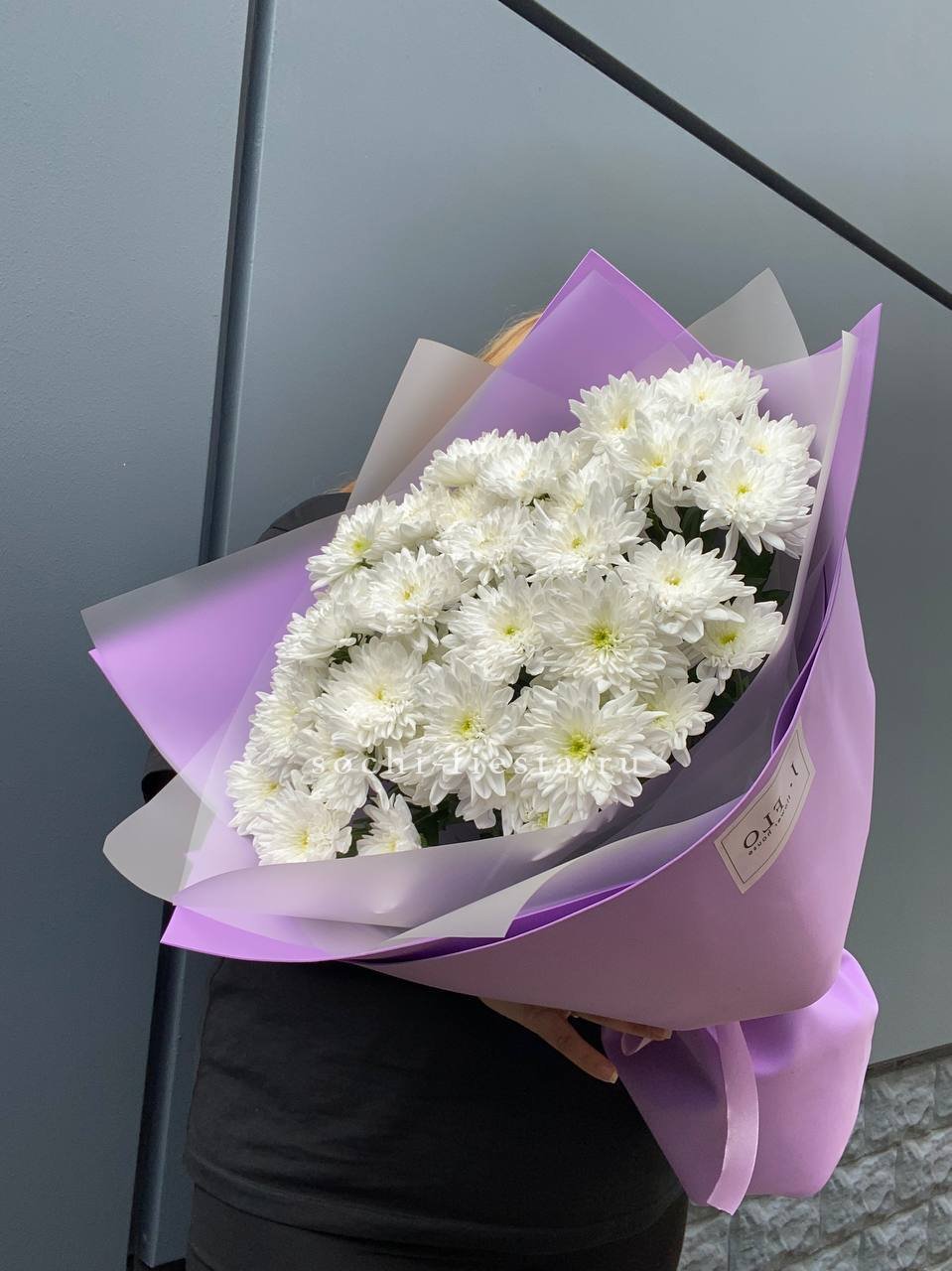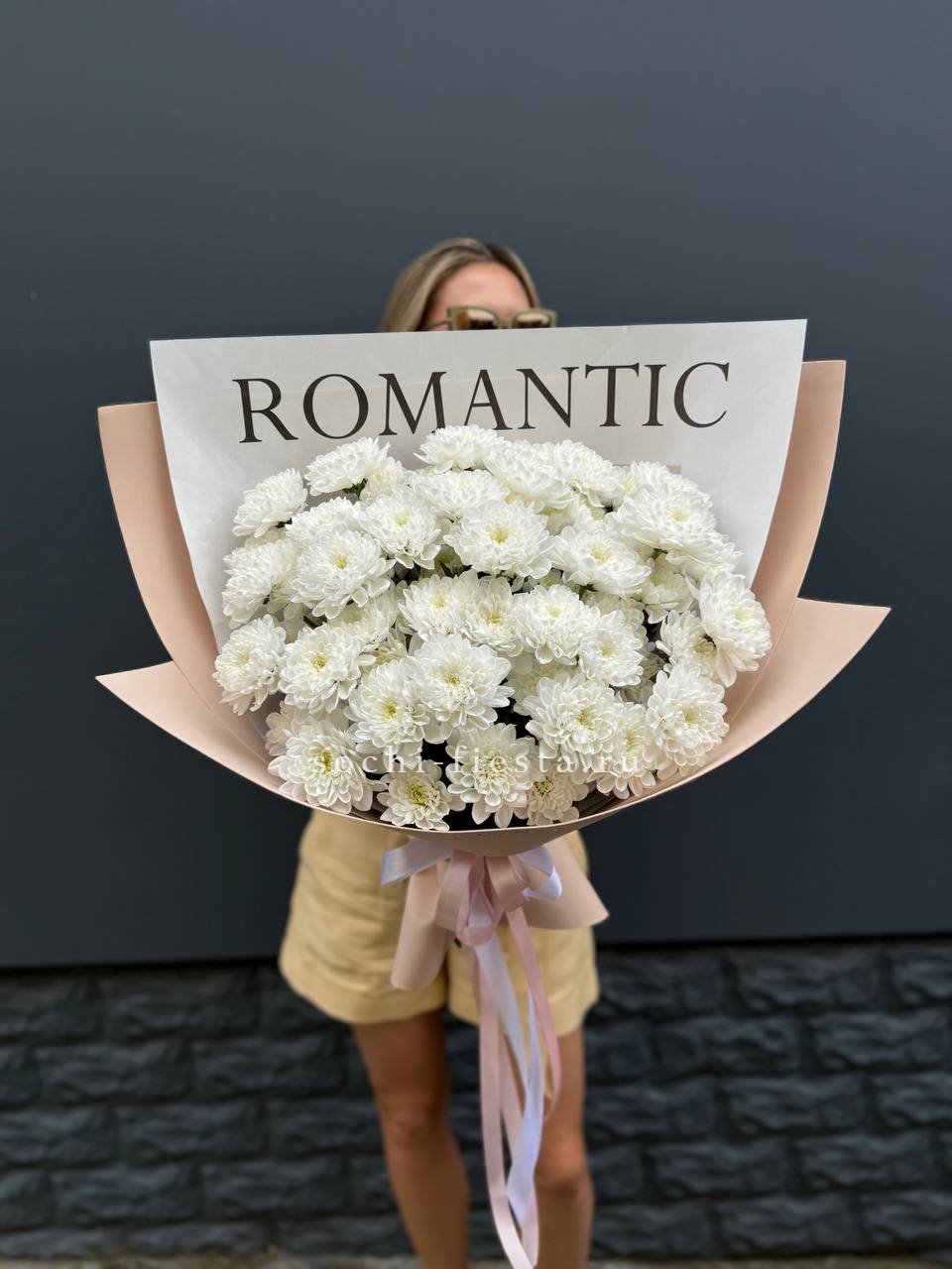 Семь пышных хризантем с коробочками хлопка собраны в мягкую композицию пастельных оттенков. Воздушная сборка и естественные линии создают ощущение легкости. Букет для тихих встреч и теплых слов.
