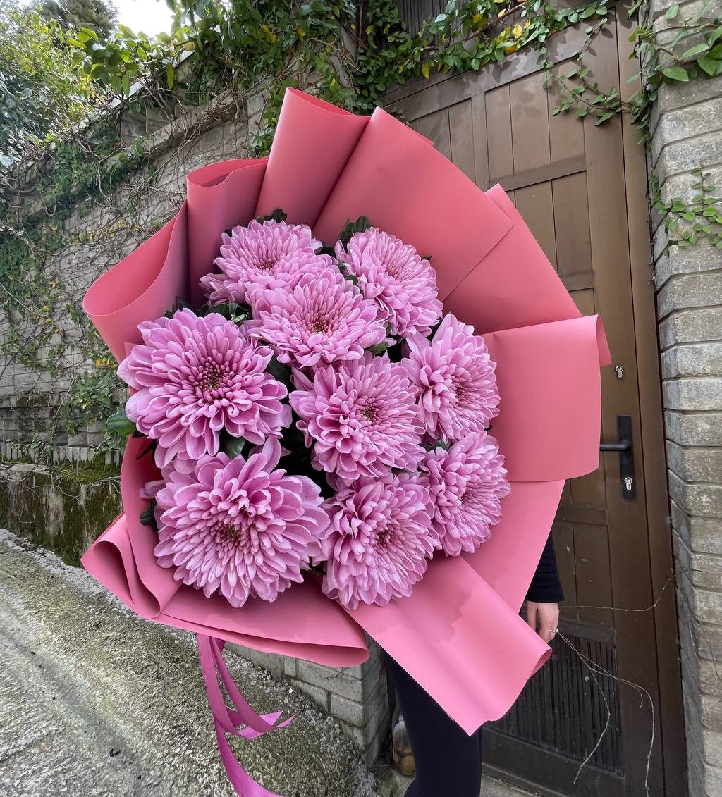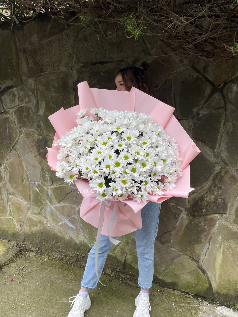 хризантема кустовая - 19 веток, лента, дизайнерская пленка.