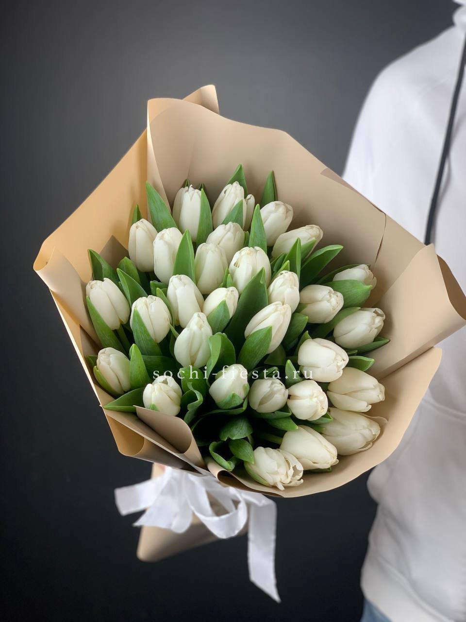 29 тюльпанов, лента, оформление.