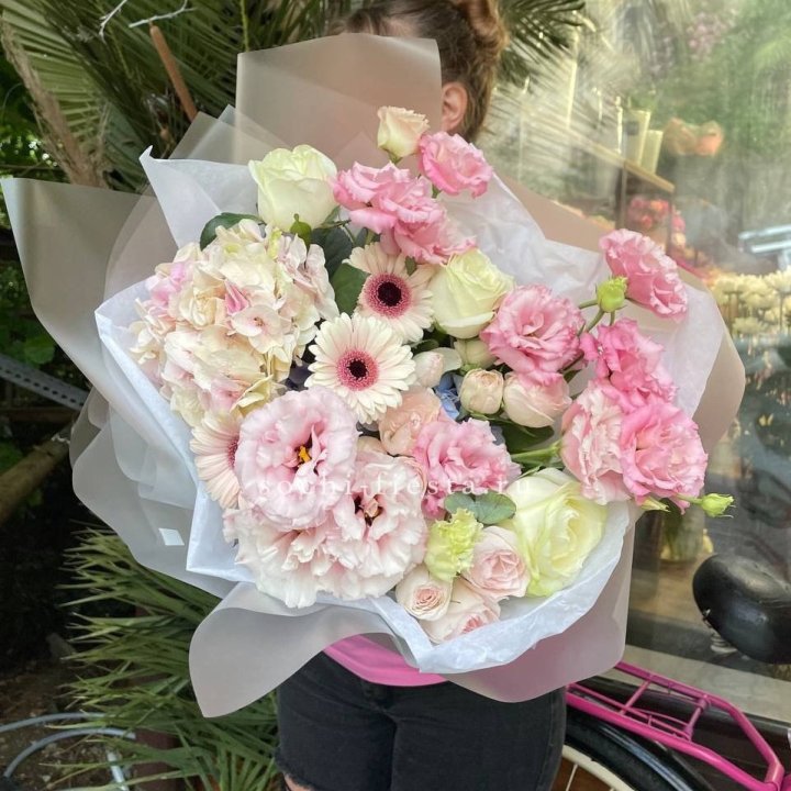 Доставка авторских букетов в Тюмени — в специальной упаковке, сохраняющей форму. Самовывоз из студии — основная опция в небольшом городе: клиент приходит лично и видит работу. Флорист лично передаёт крупные свадебные работы для контроля качества и сохранности.