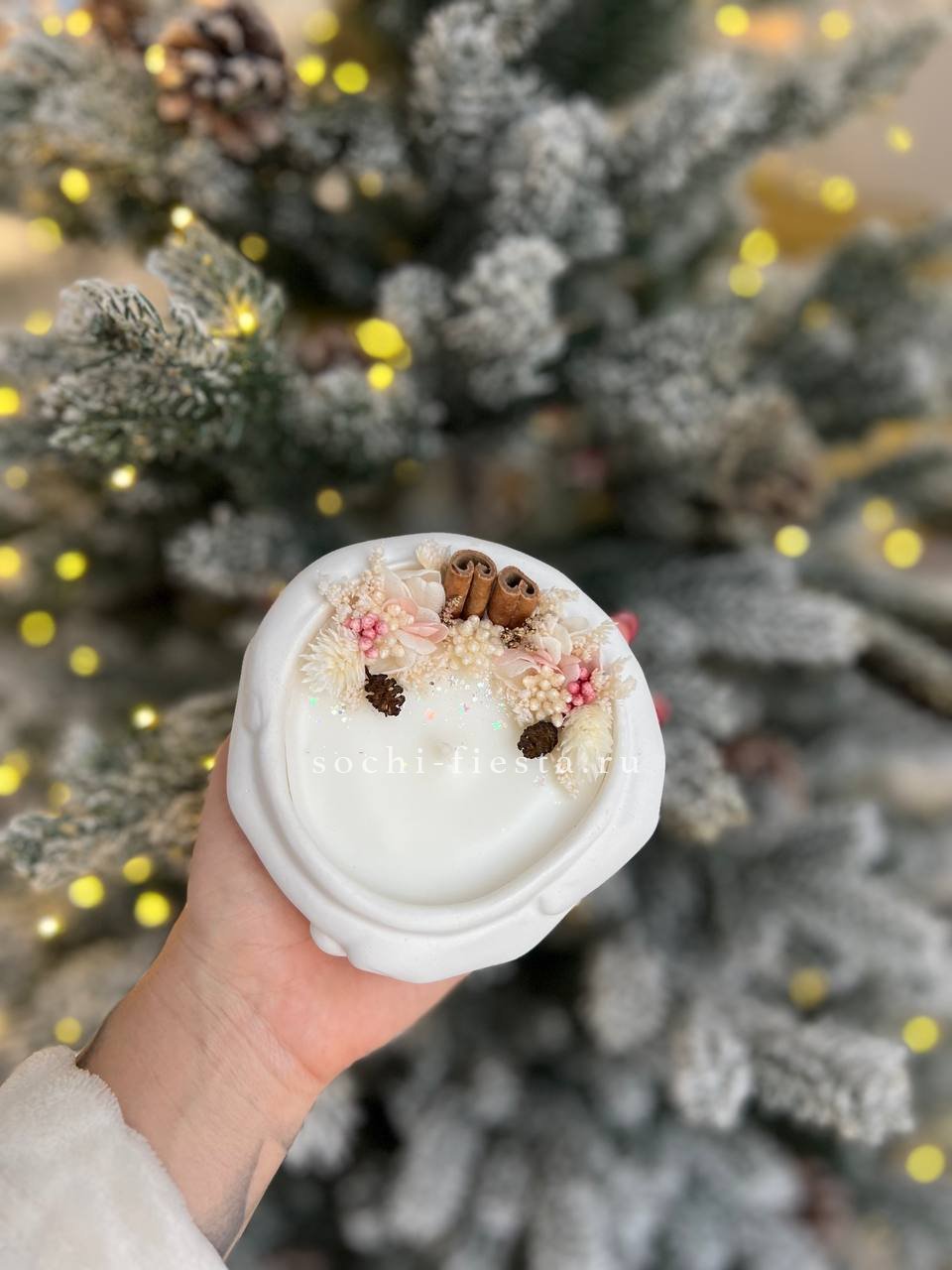 свеча ручной работы из кокосового воска в гипсе. Аромат - Бузина. Объем 150мл. Подарок является дополнением к цветочной или новогодней композиции. Свеча может быть подарена коллеге, сестре, любимой.