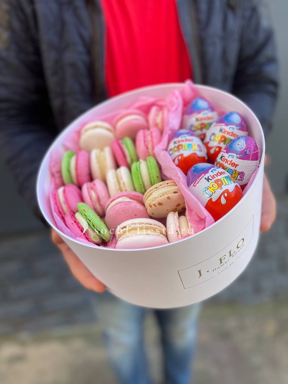 дуо бокс из киндеров и макаронс. Возможна замена киндеров на другой вид шоколада.