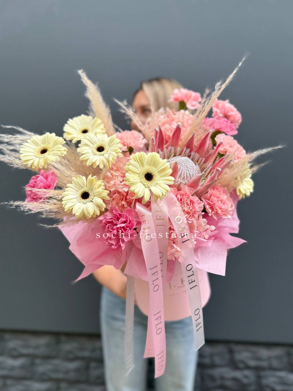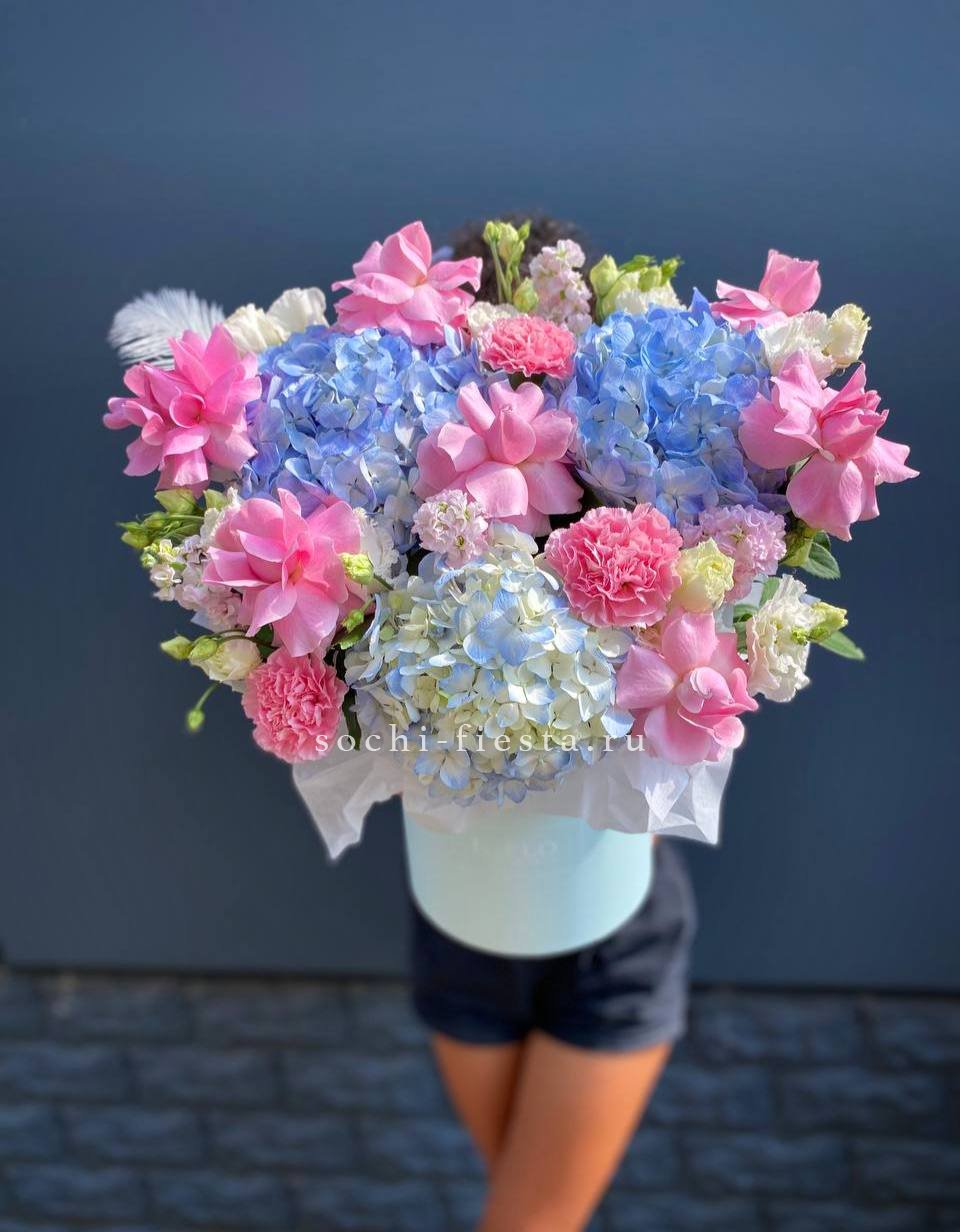 протея, гортензия, герберы, диантусы, картадерия цилиндр D16.
