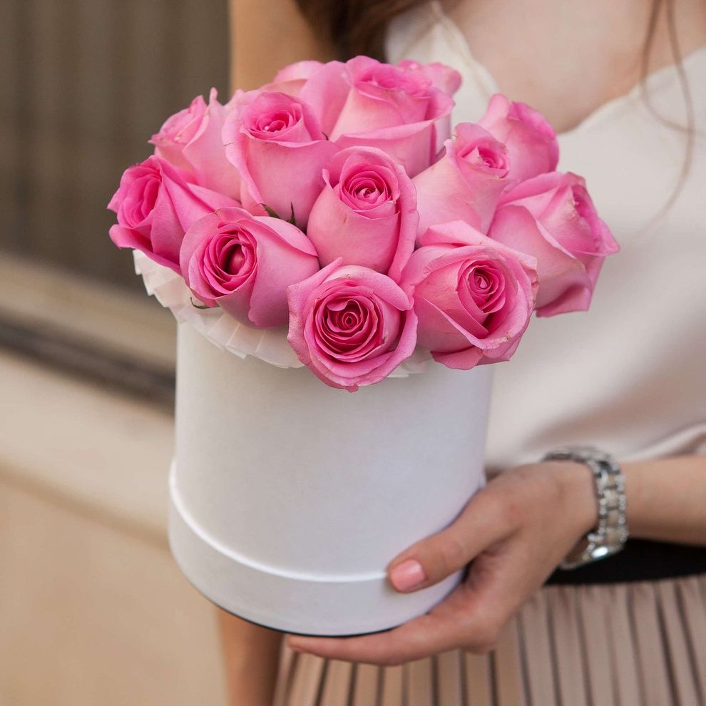 Пятнадцать розовых роз собраны в компактный бокс с мягкой бумагой. Округлая форма и аккуратная укладка делают композицию удобной для размещения на столе. Классика в современной подаче.