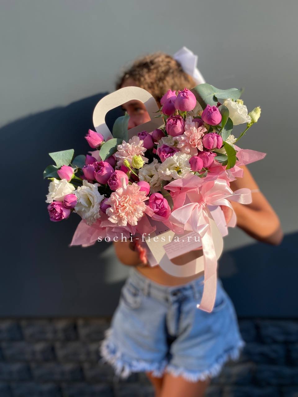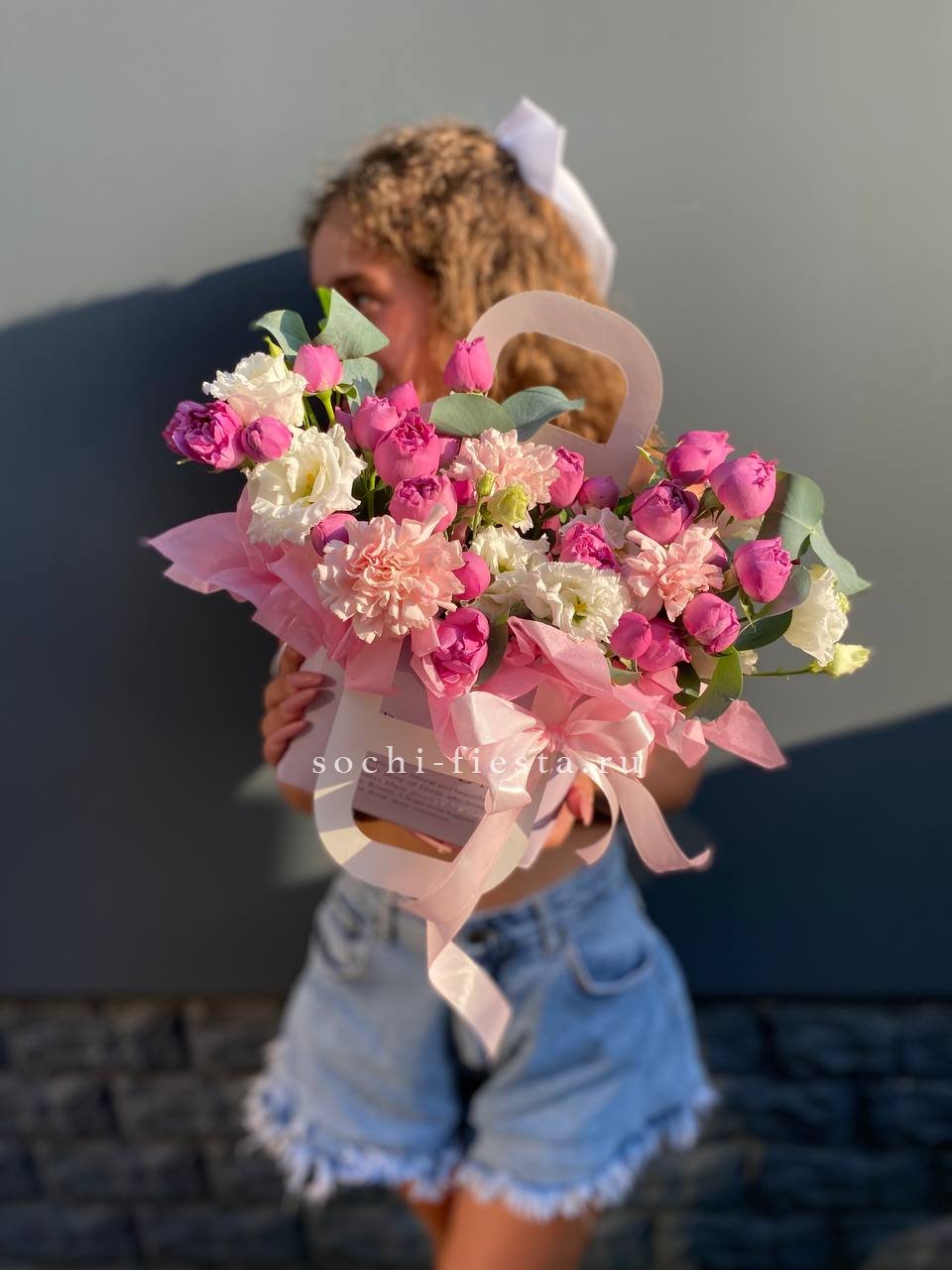 Для заказа товара "Сумочка с кустовой розой и диантусами" с доставкой в Тюмени нажмите в корзину