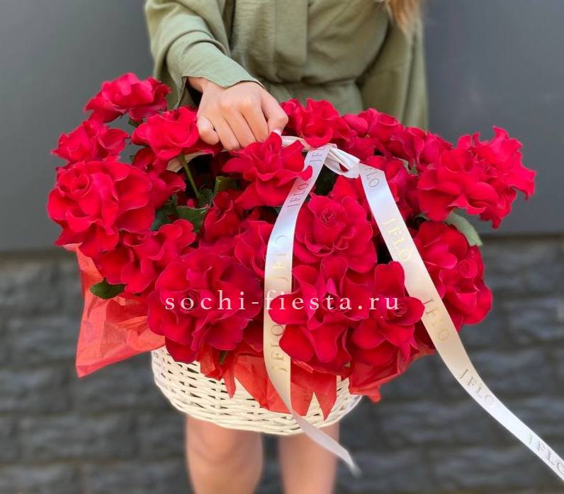 Красные французские розы в корзине