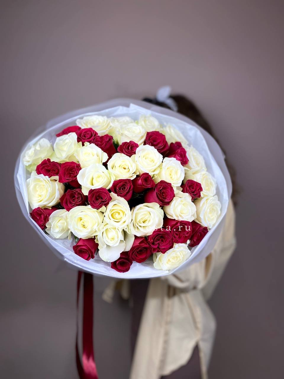 Для заказа товара "Букет из красных белых 45 роз" с доставкой в Тюмени нажмите в корзину