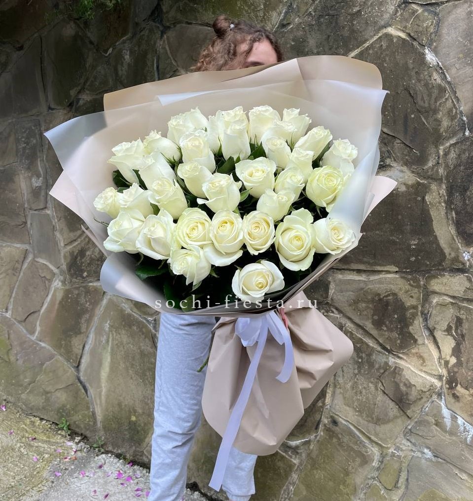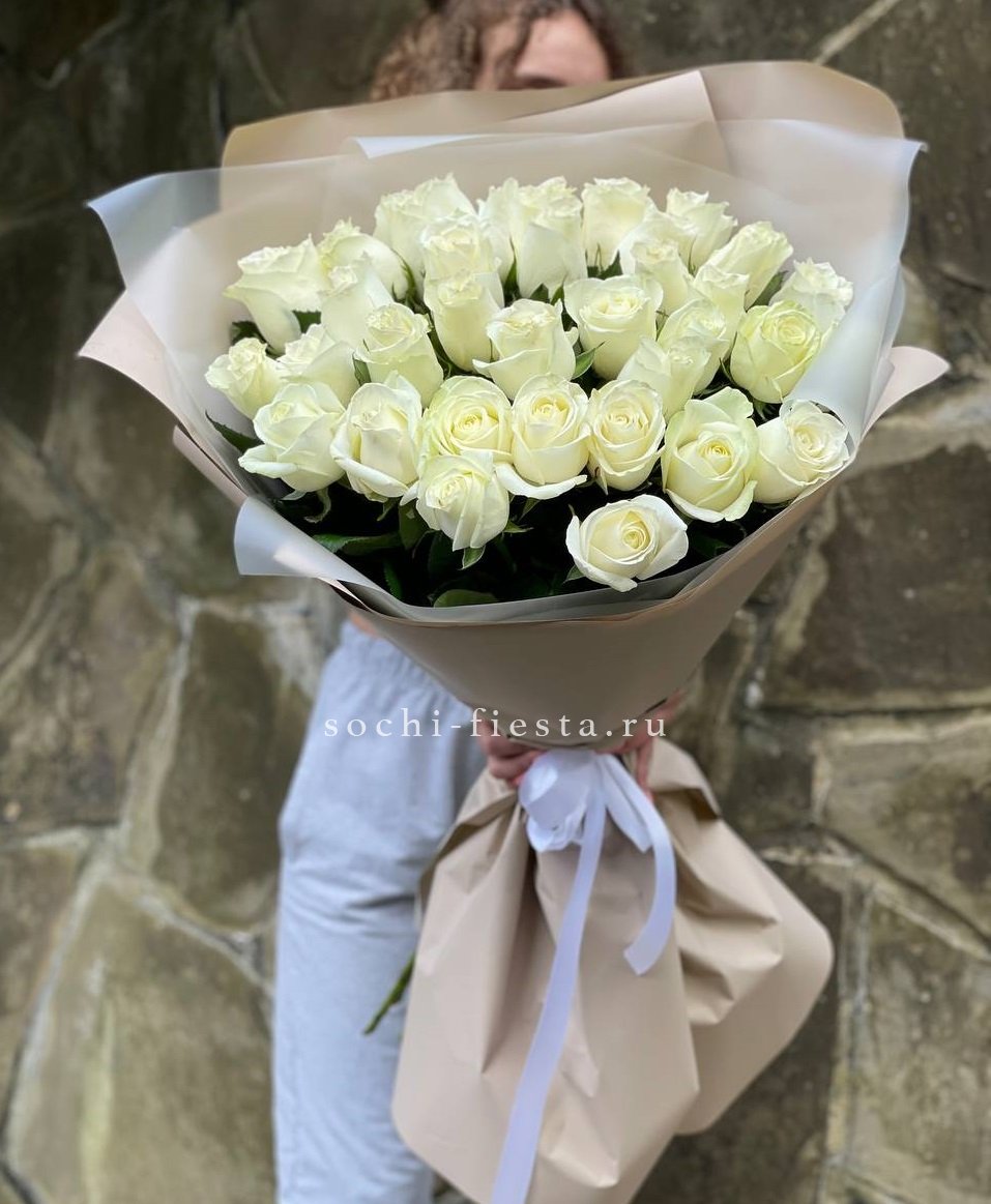 Для заказа товара " Букет высоких белых роз " с доставкой в Тюмени нажмите в корзину