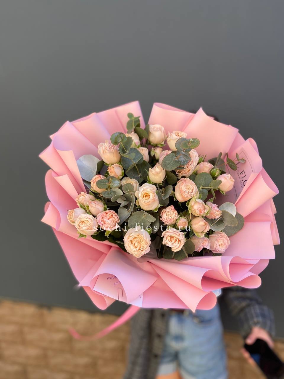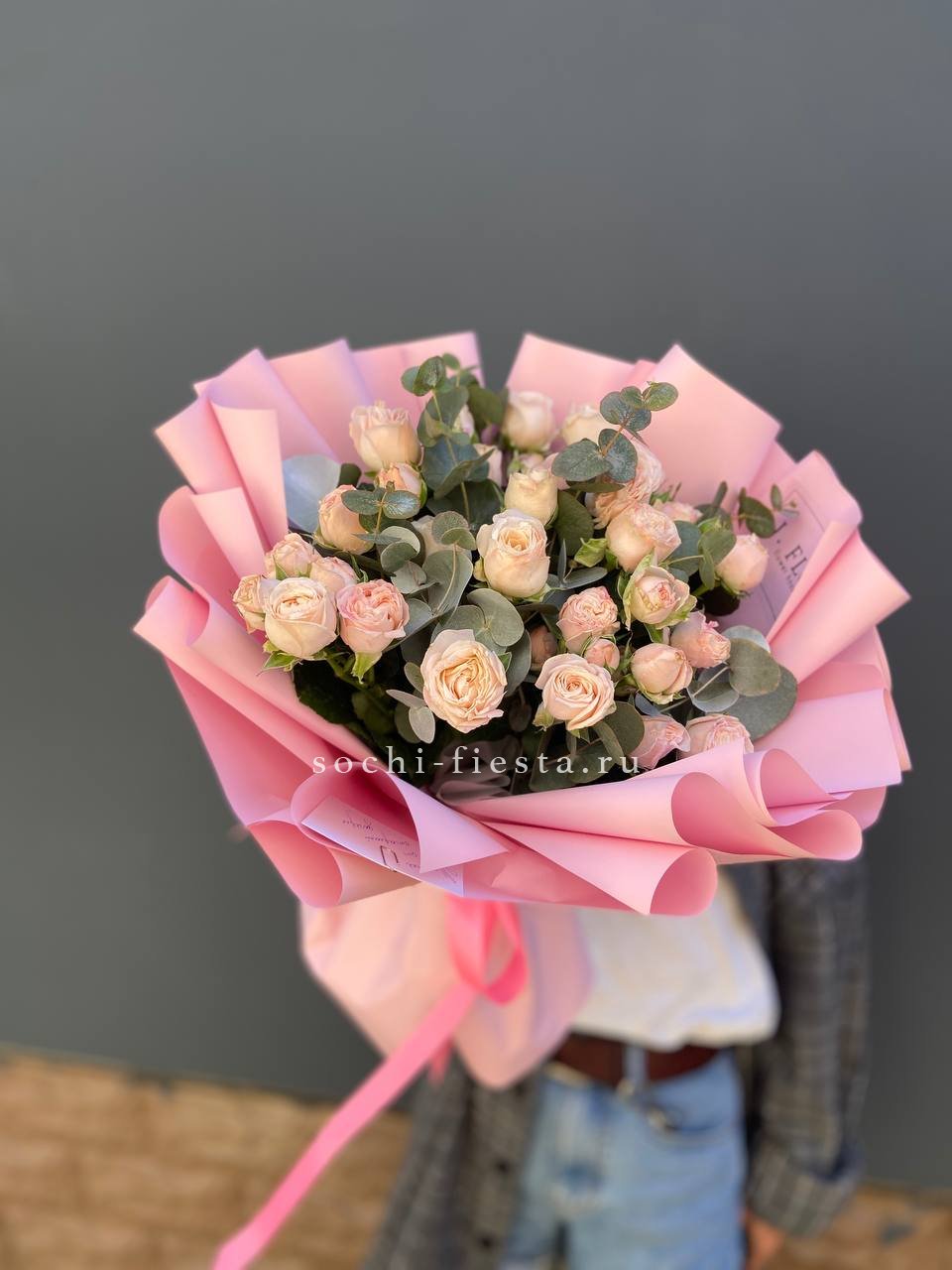 пионовидная кустовая роза Porcelain Lace/бомбастик - 15 шт., лента, авторская упаковка.