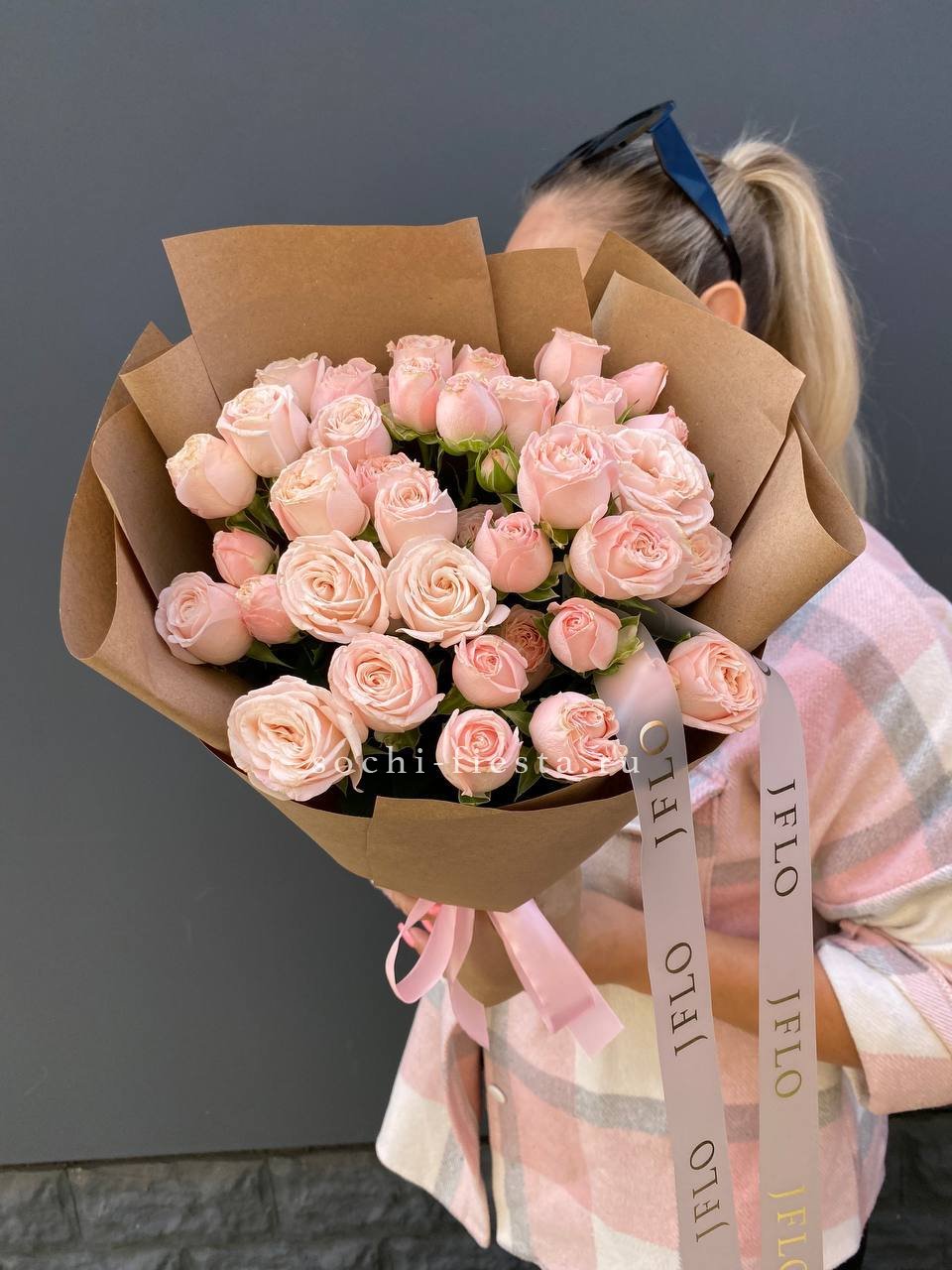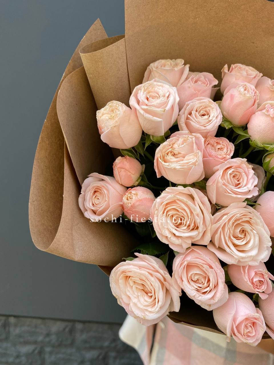 Для заказа товара "Кустовые розы Бомбастик в крафте" с доставкой в Тюмени нажмите в корзину