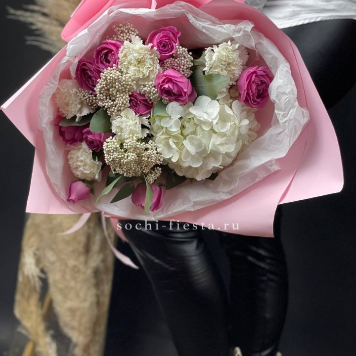 В Тюмени сборный букет — один из главных флористических форматов. Небольшой город не нуждается в авангарде и экспериментах: здесь ценят понятное, красивое и живое. Сборный букет с розами, хризантемами и сезонными акцентами — то, что флорист в Тюмени делает изо дня в день, и делает хорошо.