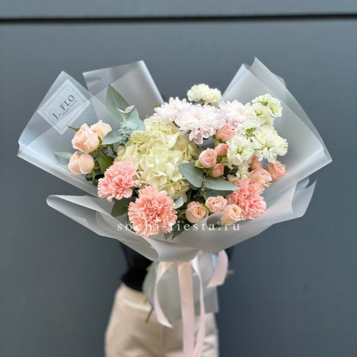 В Тюмени сборный букет — один из главных флористических форматов. Небольшой город не нуждается в авангарде и экспериментах: здесь ценят понятное, красивое и живое. Сборный букет с розами, хризантемами и сезонными акцентами — то, что флорист в Тюмени делает изо дня в день, и делает хорошо.