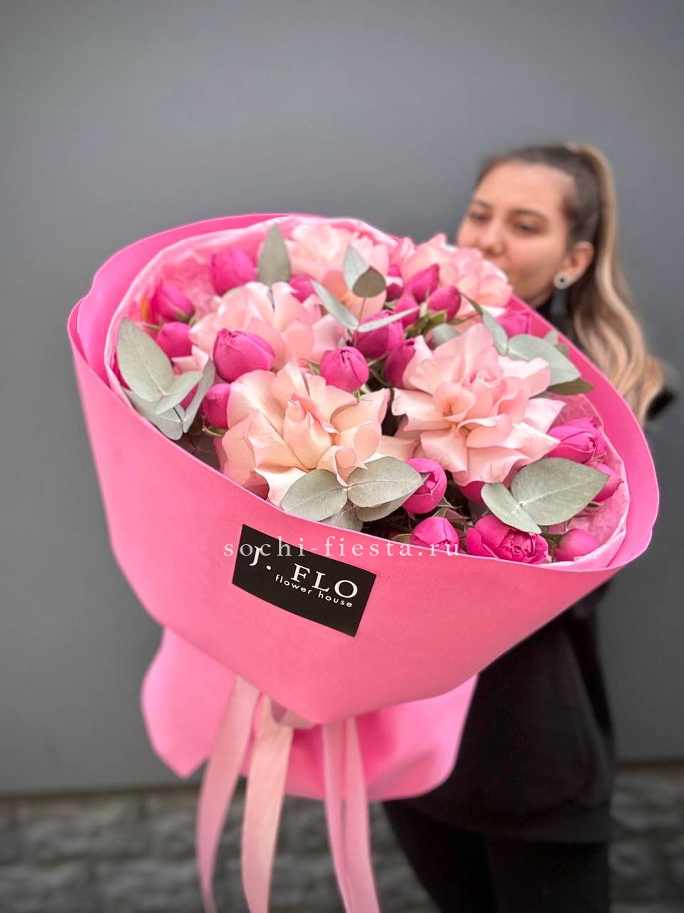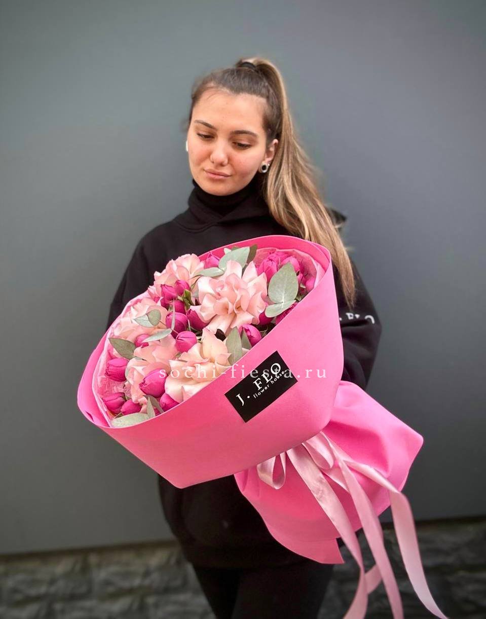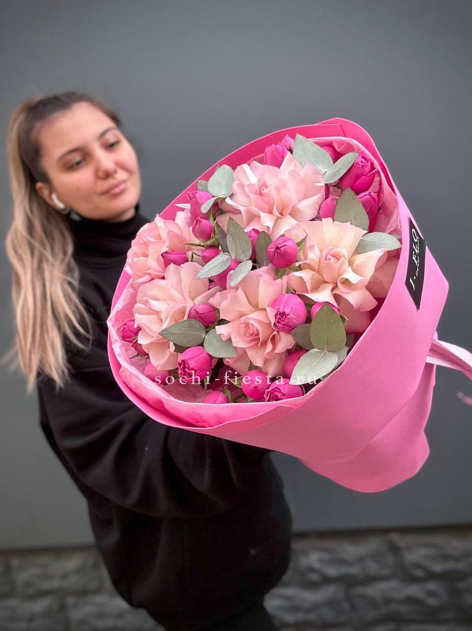 Для заказа товара "Букет французских и пионовидных роз "Ламиносо"" с доставкой в Тюмени нажмите в корзину