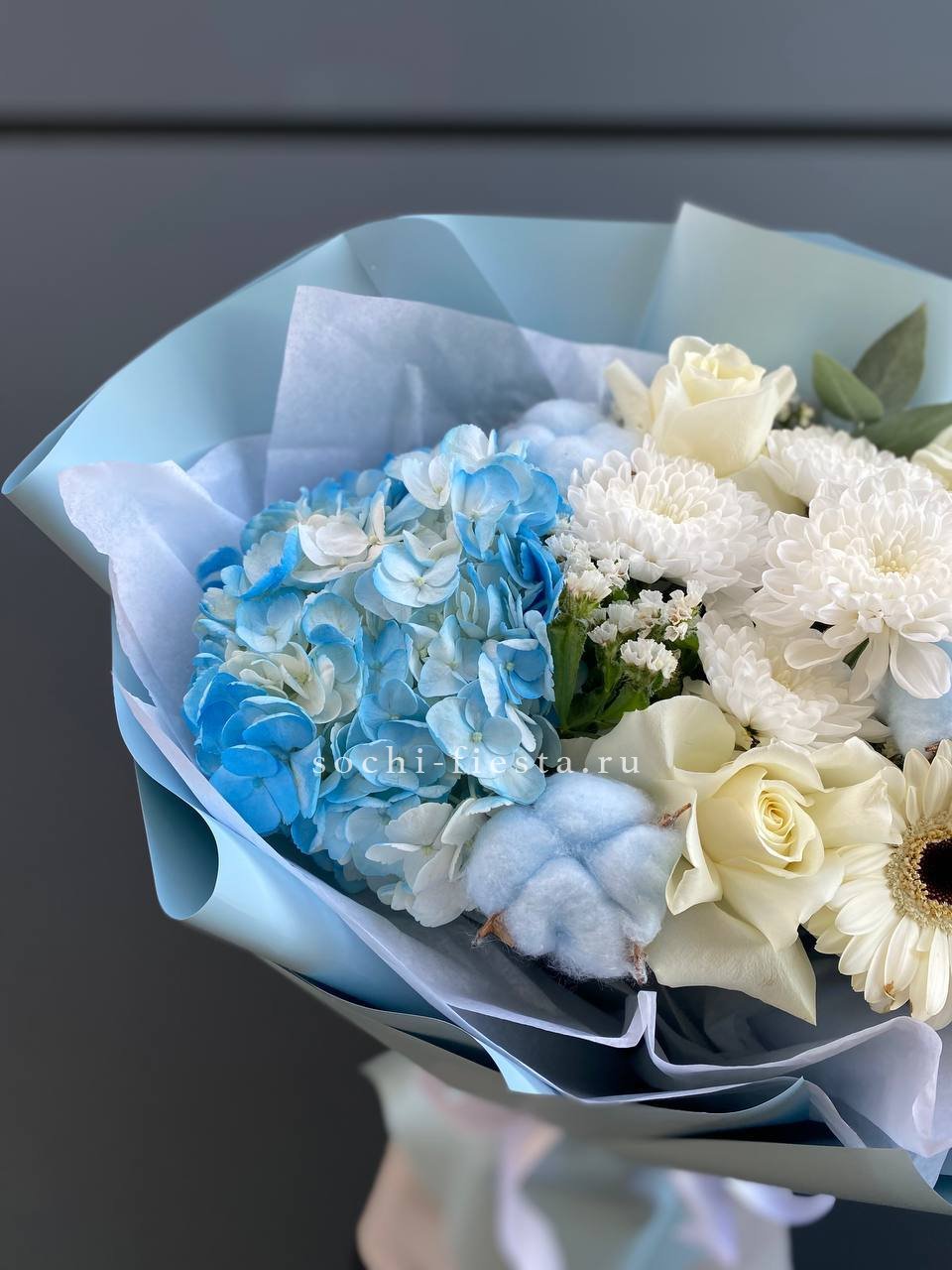 гортензия, диантус, хризантема, бомбастик, озатамус, пленка.