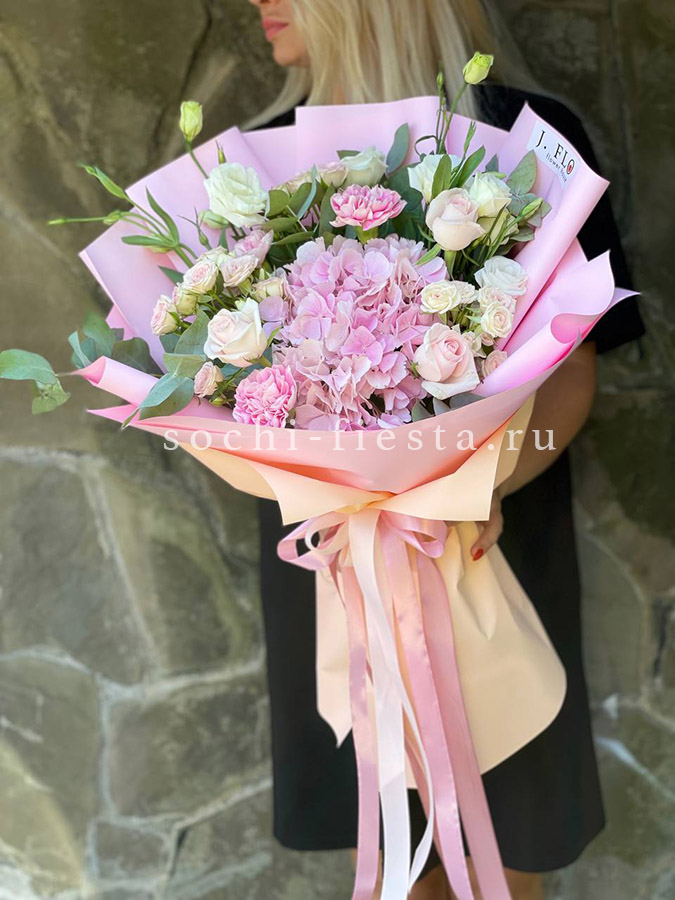 джумилия, диантус, озатамус, гербера, гортензия, пленка.