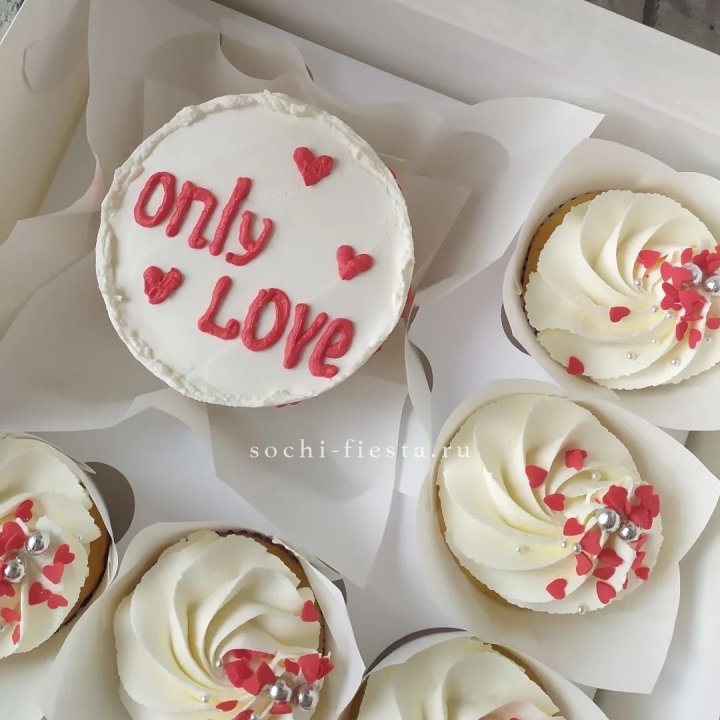 - Праздничные сеты — торт, капкейки и букет в единой праздничной упаковке.