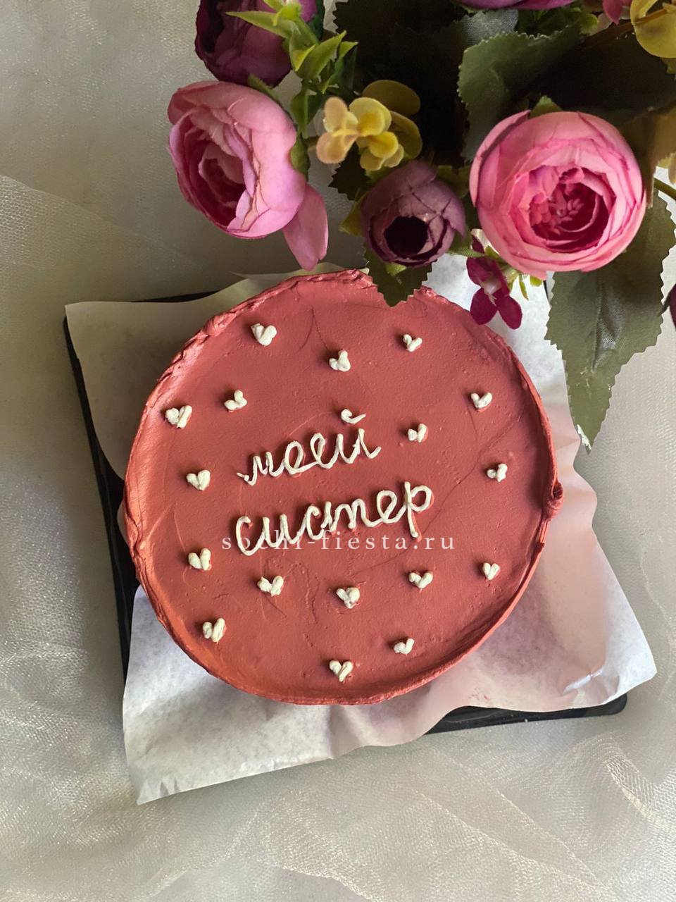 Майская тематика раскрыта через персональную надпись и дизайн кремовой поверхности. Торт выглядит цельно, декор не перегружает композицию. Формат подходит для камерного чаепития.