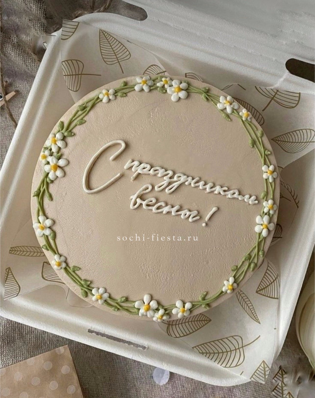 Миниатюрный торт с романтичным декором и насыщенной кремовой основой. Яркие акценты и надпись делают его центром внимания на столе. Клубничный или шоколадный вкус на выбор.