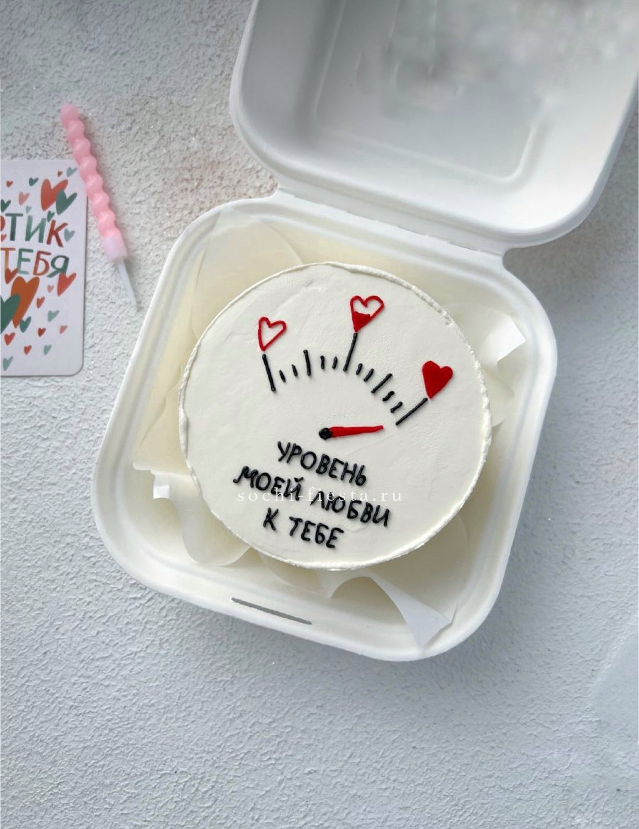 Для заказа товара "Бенто-торт "Уровень моей любви к тебе" " с доставкой в Тюмени нажмите в корзину